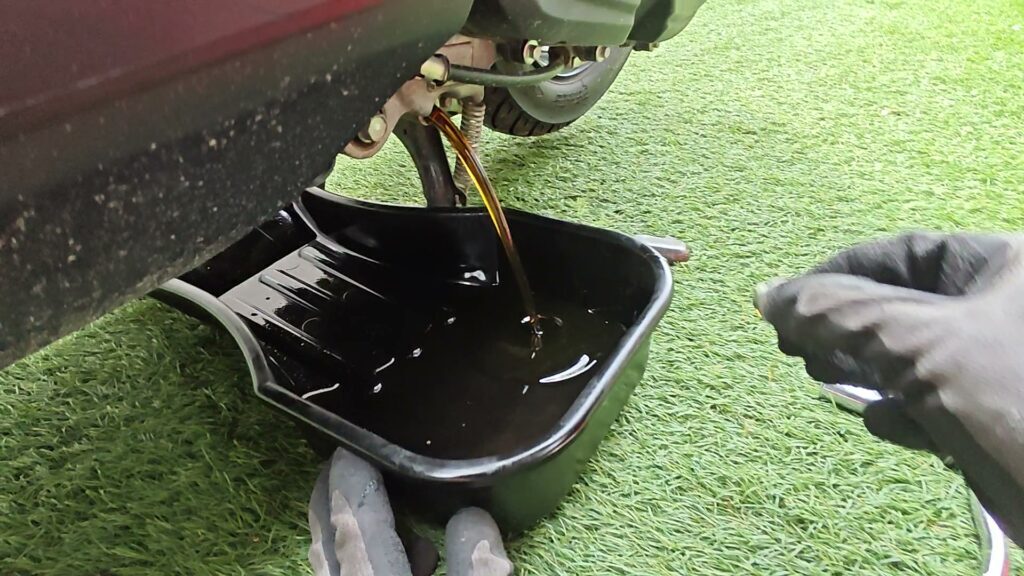 ボルトを緩めて外すと、勢いよくオイルが出てきます。